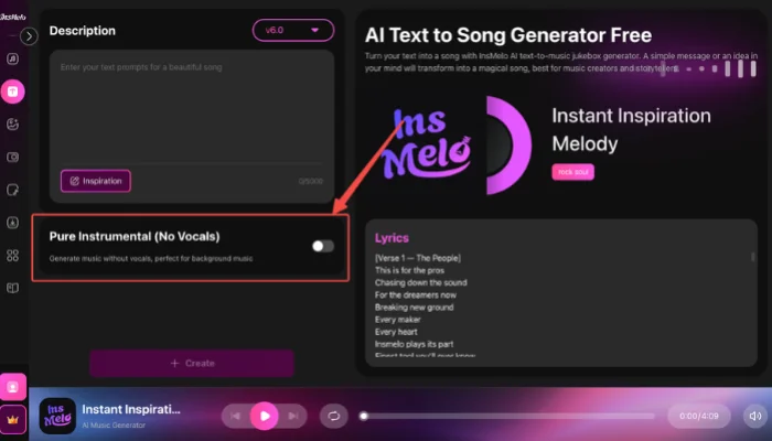 Toggle “Pure Instrumental (No Vocals)” ON if you want a clean guitar solo without vocals. This is recommended for solo and riff generation.
