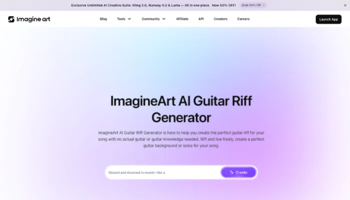 ImagineArt provides a creative approach to music generation by transforming concepts into sound. Its system produces unique AI generated guitar solo outputs that often lean toward cinematic and ambient styles. This tool works well for creators exploring unconventional sound design or visual-inspired music ideas.