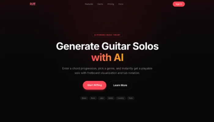 Riff AI focuses on rhythm creation, making it a strong free guitar riff generator for building foundational ideas. Its loop-based system helps users develop riffs that can evolve into full solos. This tool is especially useful for beginners who want quick inspiration before refining their music further.