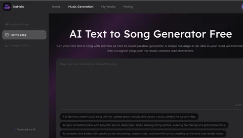 Go to InsMelo, find the music generation section, and select the text to song feature.