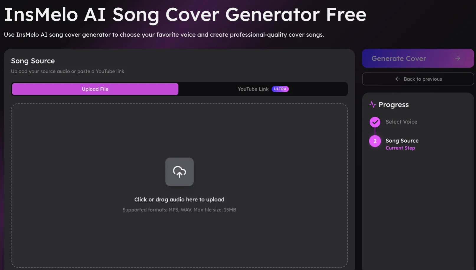 Try to start with a clear, high-quality audio file whenever possible. In my experience, clean vocals help the AI understand the voice better and produce a more natural-sounding cover.