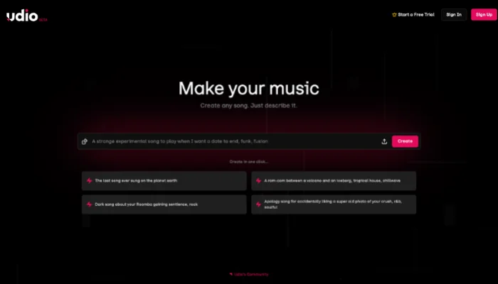 Udio is widely recognized as one of the closest Suno competitors, especially for users who focus on vocal-driven music. It stands out for producing songs with more natural phrasing, clearer articulation, and a stronger sense of musical flow compared to many AI tools in this space, making it particularly appealing for creators whose tracks rely heavily on vocals rather than instrumentation.