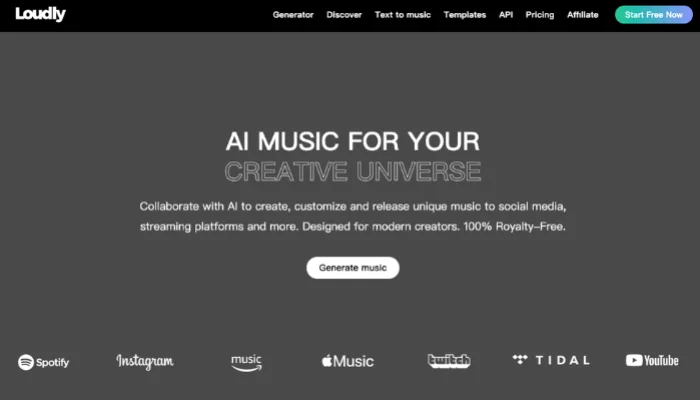 If your focus is short-form content, Loudly is built exactly for that use case. It generates quick, catchy tracks that align with trending formats, which makes it particularly useful for TikTok, Reels, and YouTube Shorts. Compared to Suno, the output feels more tailored to social media pacing, helping creators produce engaging content without spending too much time on music creation.